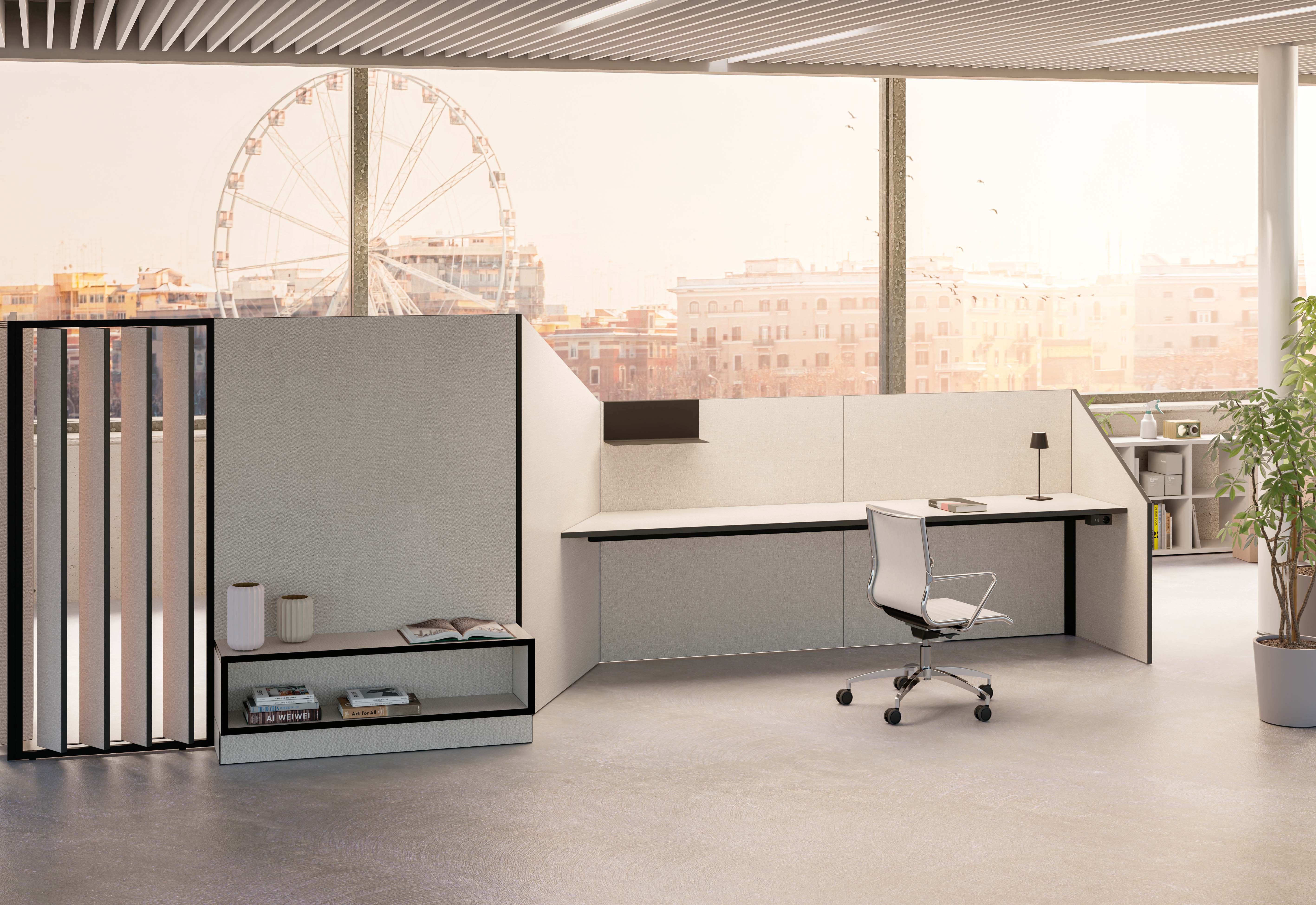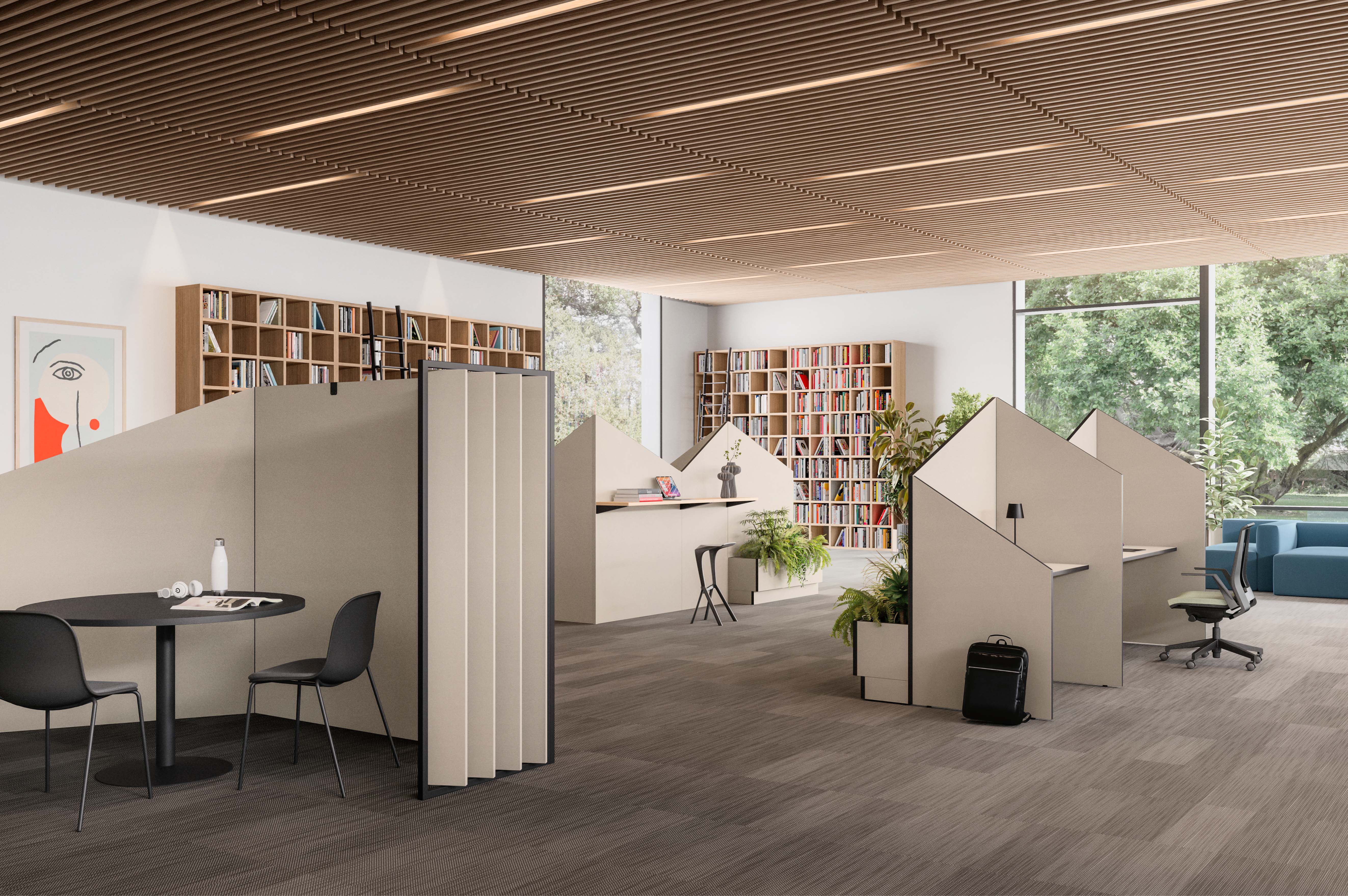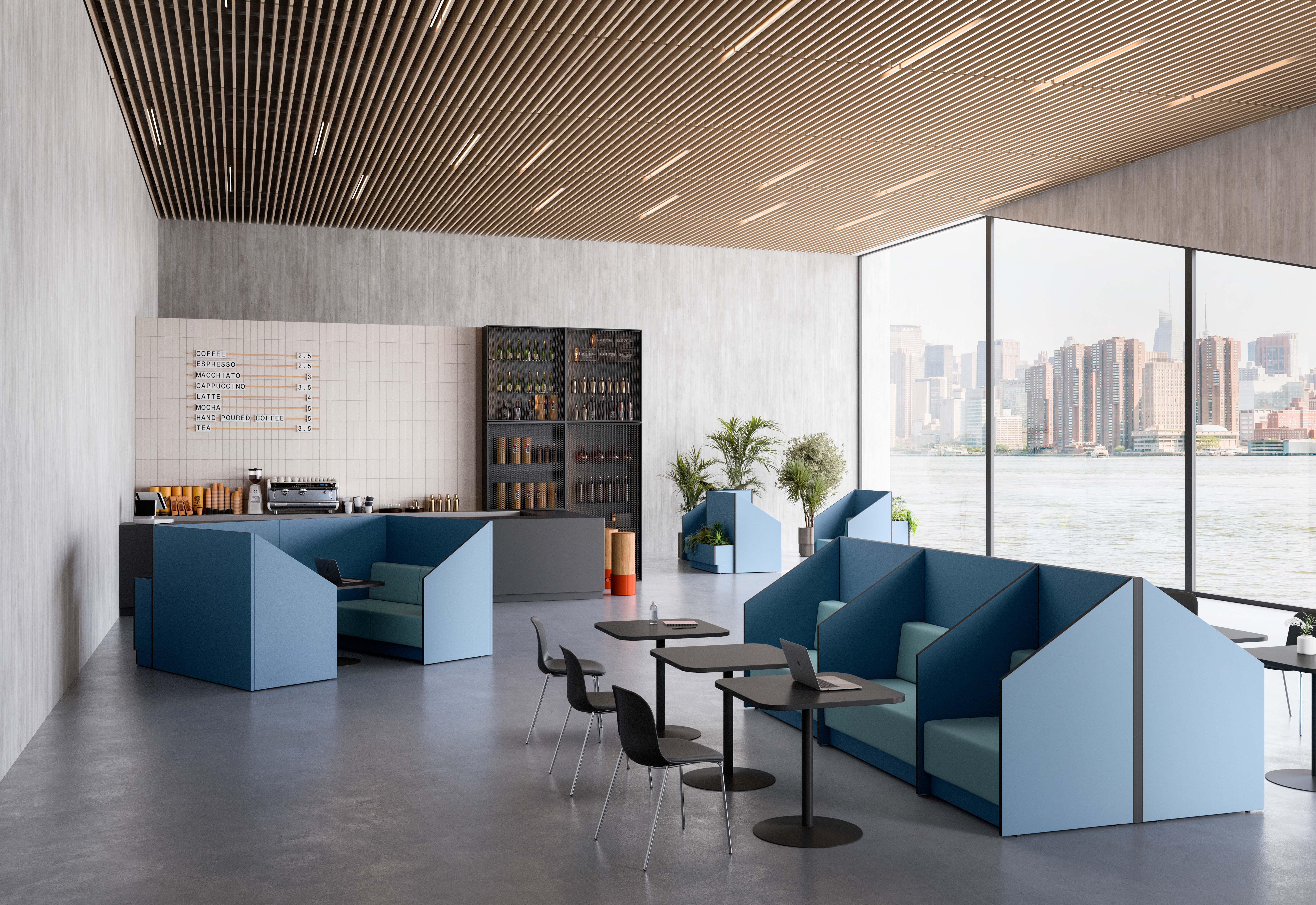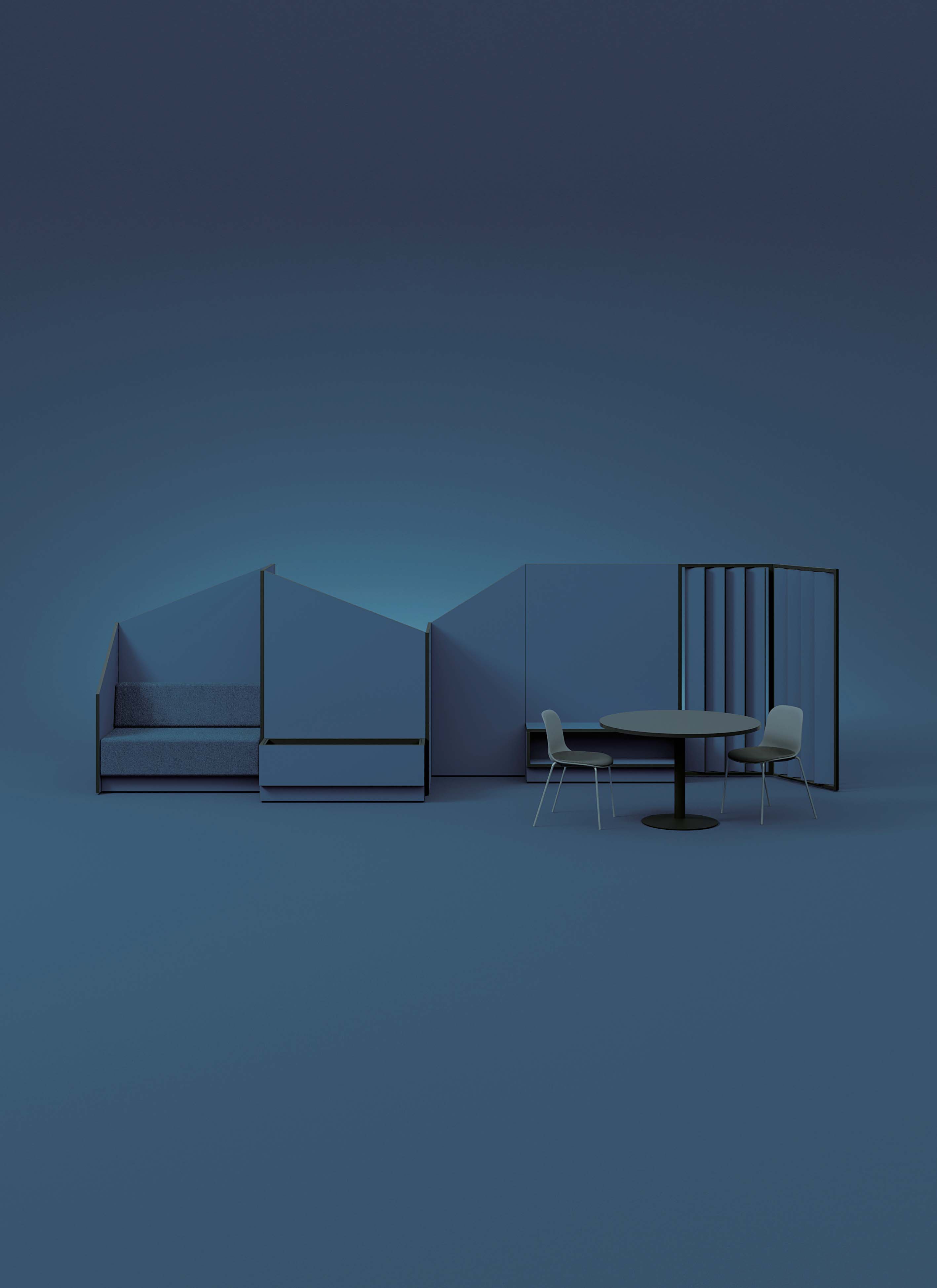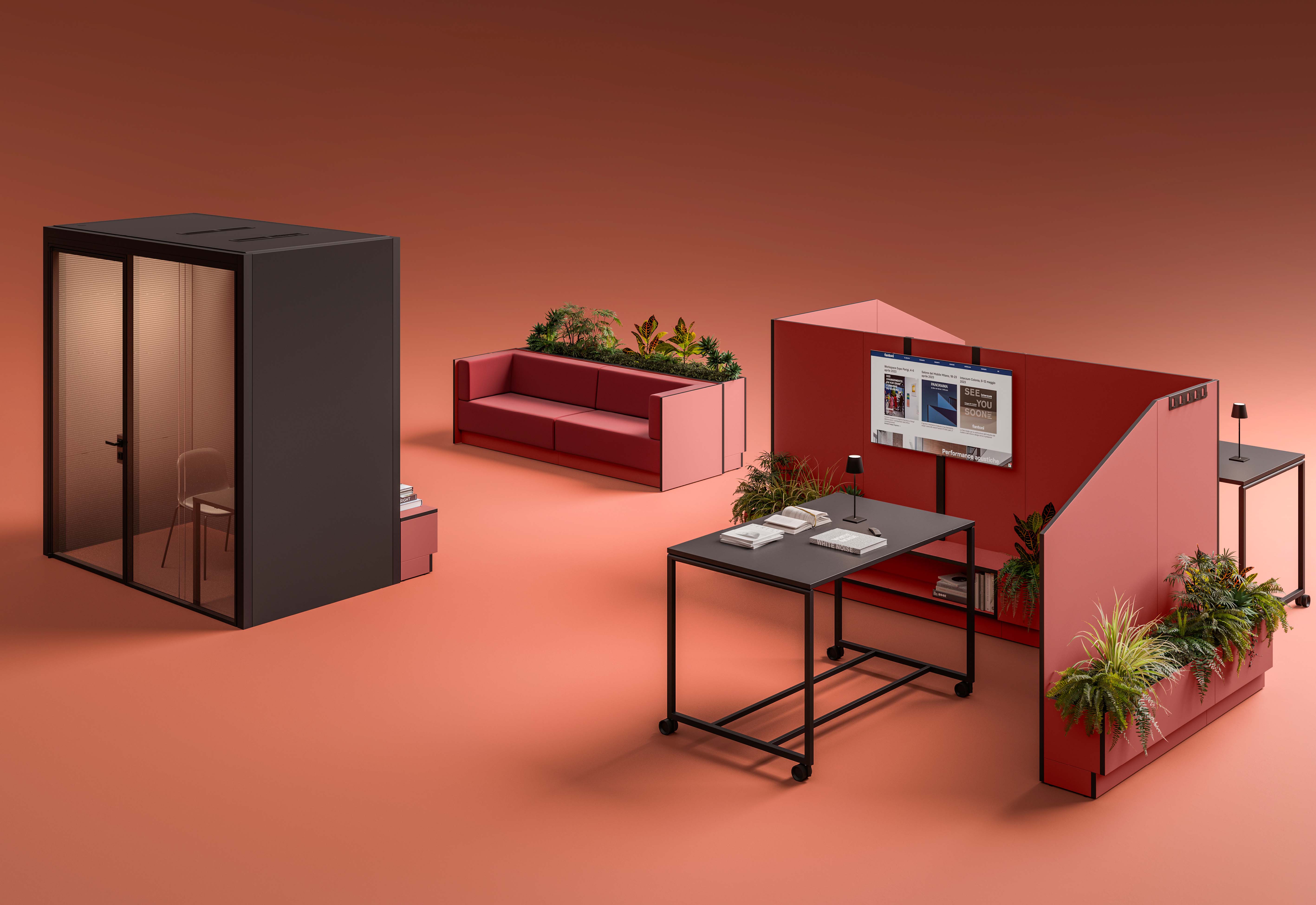 Queste composizioni definiscono spazi privati per momenti di focus brevi o lunghi, si integrano con i phone booth Mini per videochiamate individuali, creano sale meeting per lavoro in team e lavoro individuale. Le diverse altezze disegnano diversi livelli di privacy attorno ai quali si formano layout specifici e accoglienti per un landscape umano-centrico.