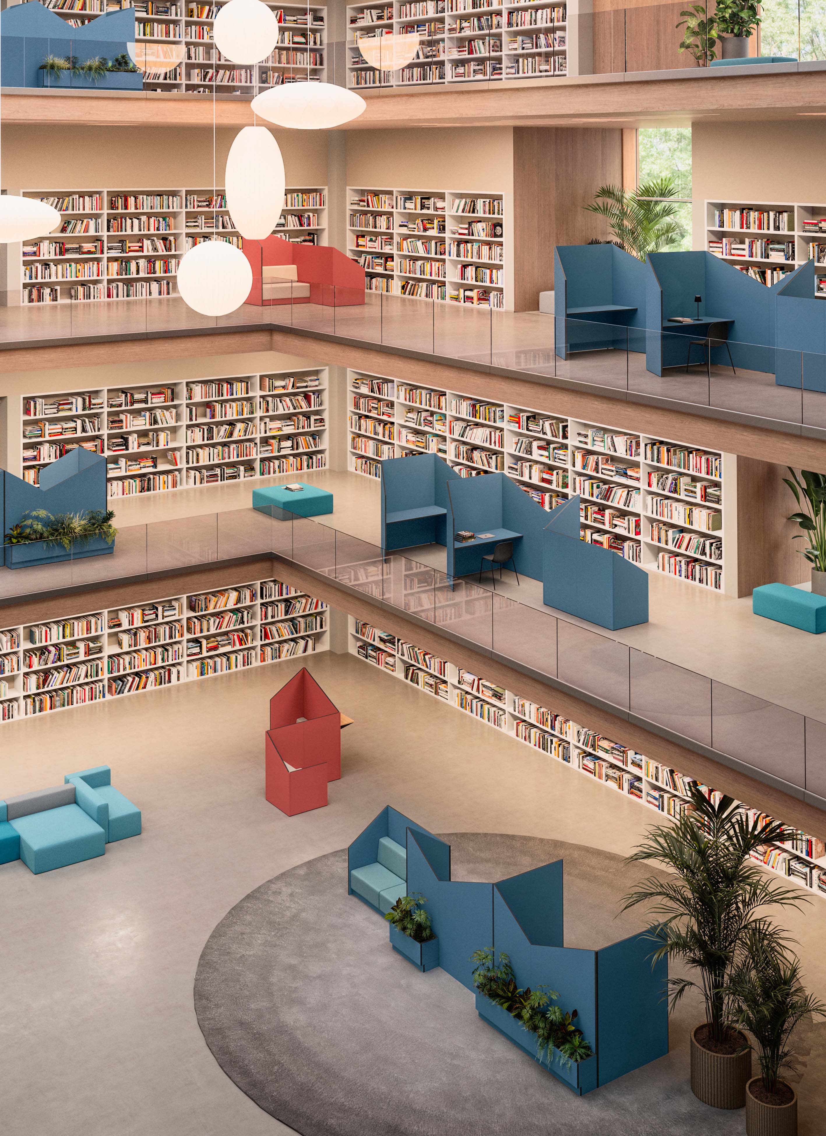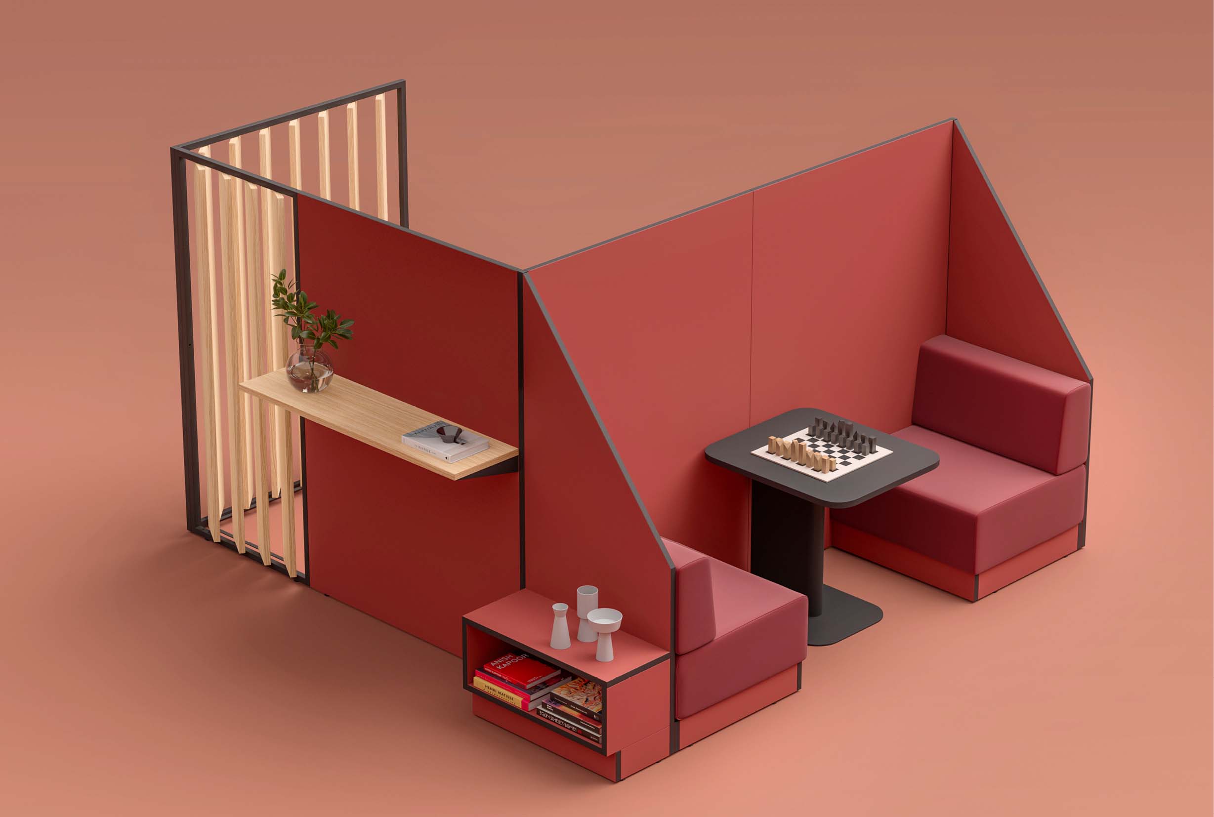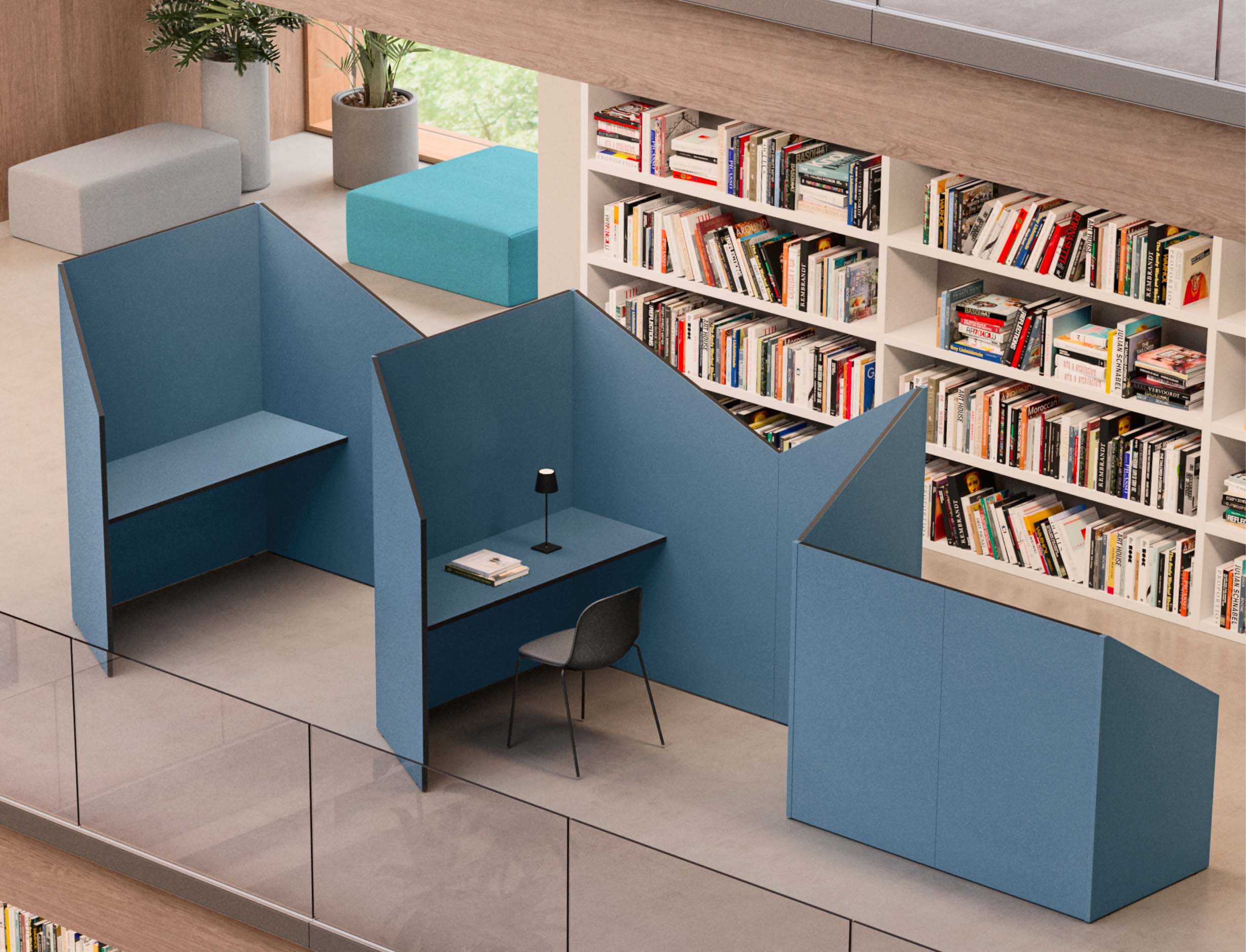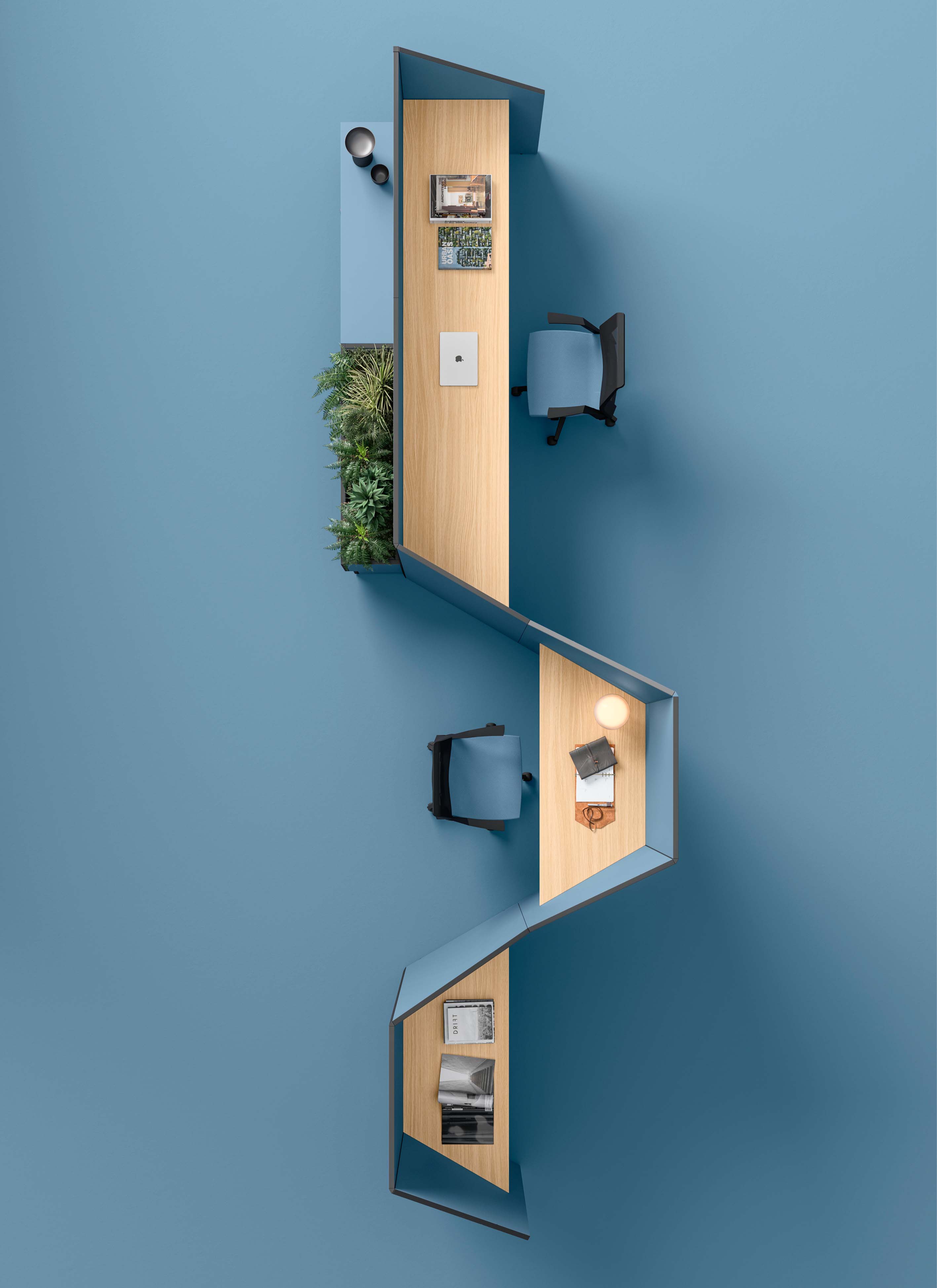 Queste composizioni definiscono spazi privati per momenti di focus brevi o lunghi, si integrano con i phone booth Mini per videochiamate individuali, creano sale meeting per lavoro in team e lavoro individuale. Le diverse altezze disegnano diversi livelli di privacy attorno ai quali si formano layout specifici e accoglienti per un landscape umano-centrico.