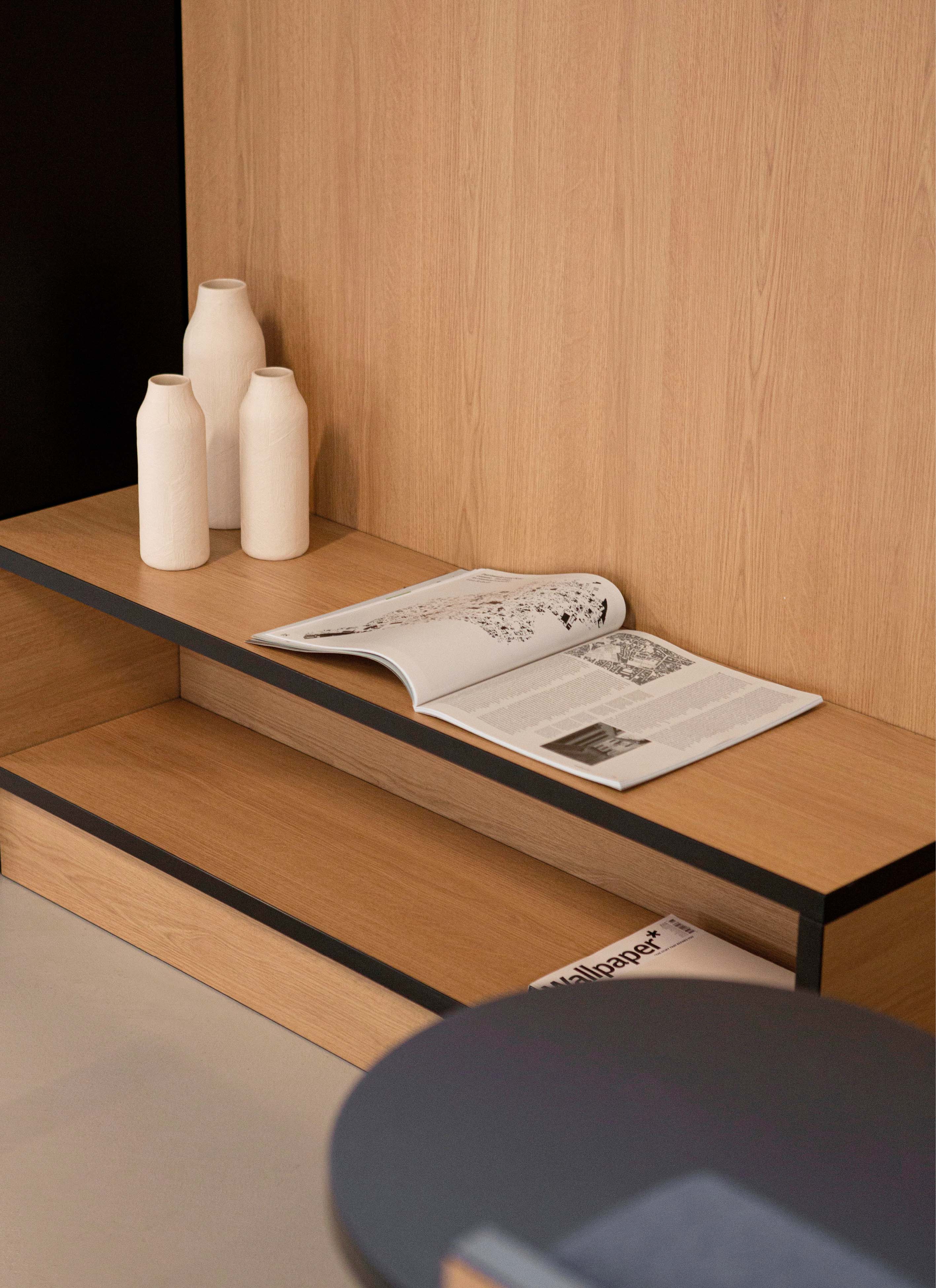 Una serie di composizioni caratterizzate dal bordo nero che si esprimono sui due lati disegnando layout sempre diversi e esaltando il senso di comfort e comunità.